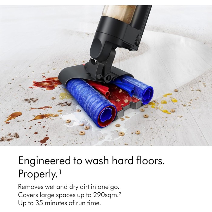 صُمِّمت وحدات دايسون الأسطوانية الآلية لتقوم بتفكيك البُقع مرتين مع كل تمريرة، حتى تتسنى إزالتها سريعاً.