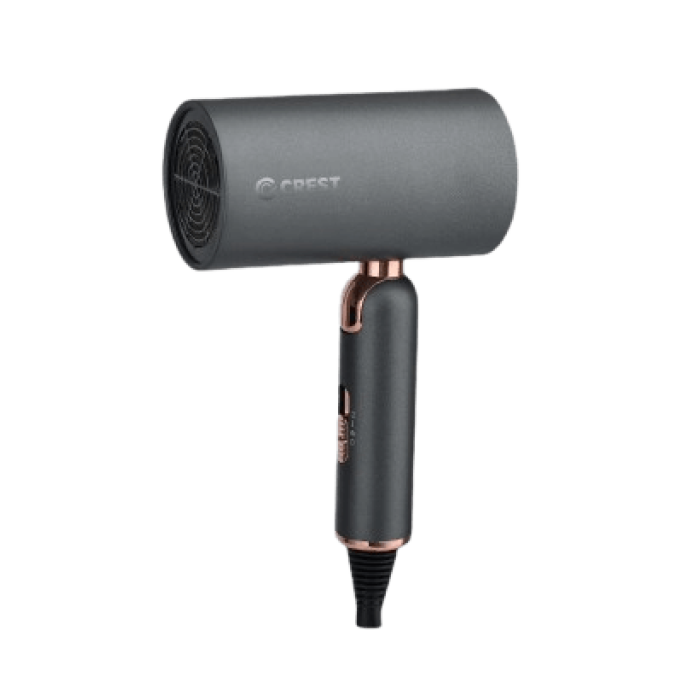 مجفف الشعر CREST CR-5178 يتميز بتصميم أنيق وعصري باللون الأسود مع لمسات نحاسية. صُمم ليمنحك تجربة تجفيف مريحة وسريعة بفضل قوته العالية ومميزاته المتقدمة التي توفر تحكمًا دقيقًا بالحرارة والهواء.