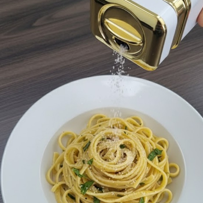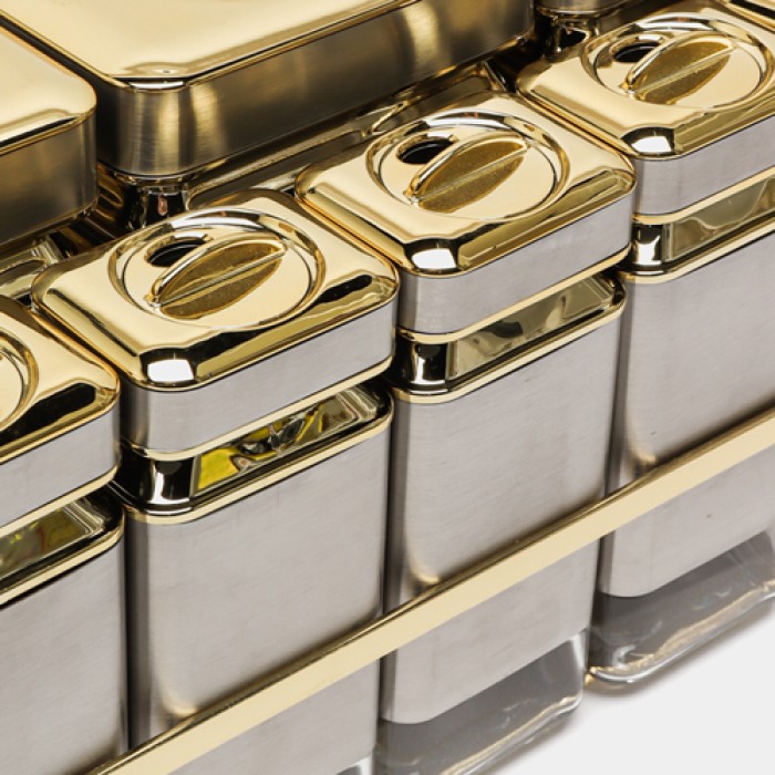 مملحة زجاج ابيض مربع غطاء ذهبي 9242398