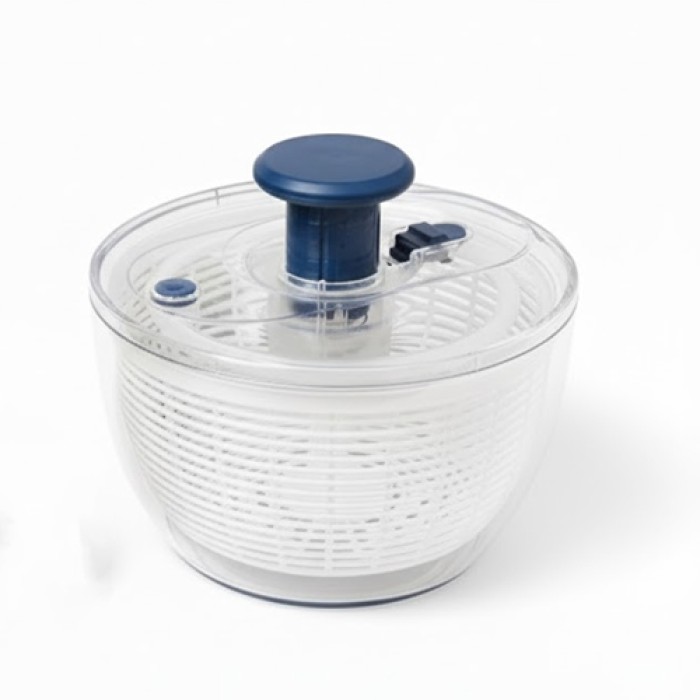 اضغط على المقبض لجعل السلة تدور، وتنظيف وتجفيف السلطة.
