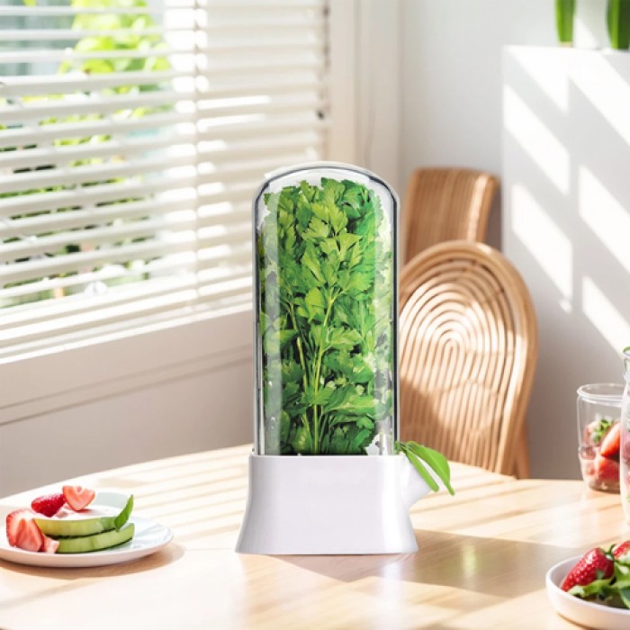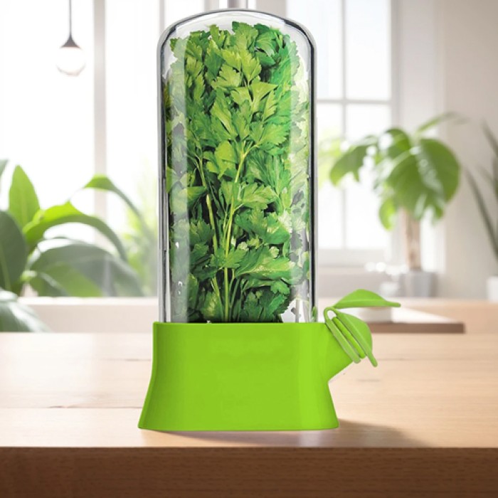 حافظة أعشاب عملية مصممة للمحافظة على نضارة الأعشاب الطازجة مثل البقدونس، الكزبرة، النعناع، والشبت لفترة أطول.