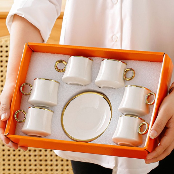 6ستة فناجين قهوة ابيض يد ذهب مشكل 9250594 BF