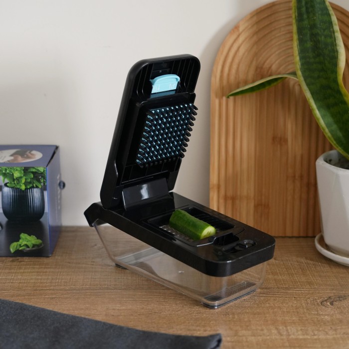 تحتوي على علبة تجميع شفافة أسفل القطاعة لتجميع المكونات المقطعة.