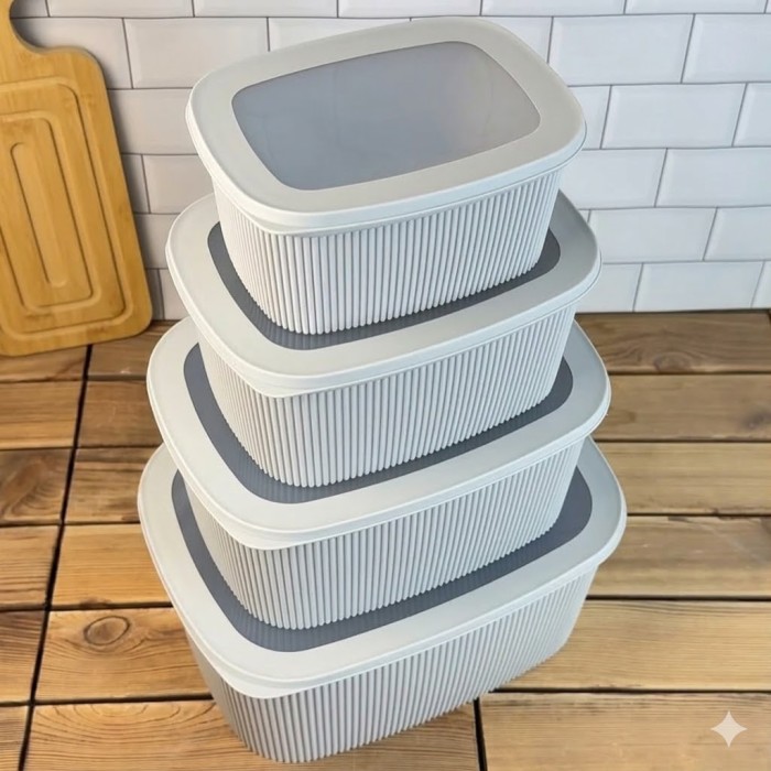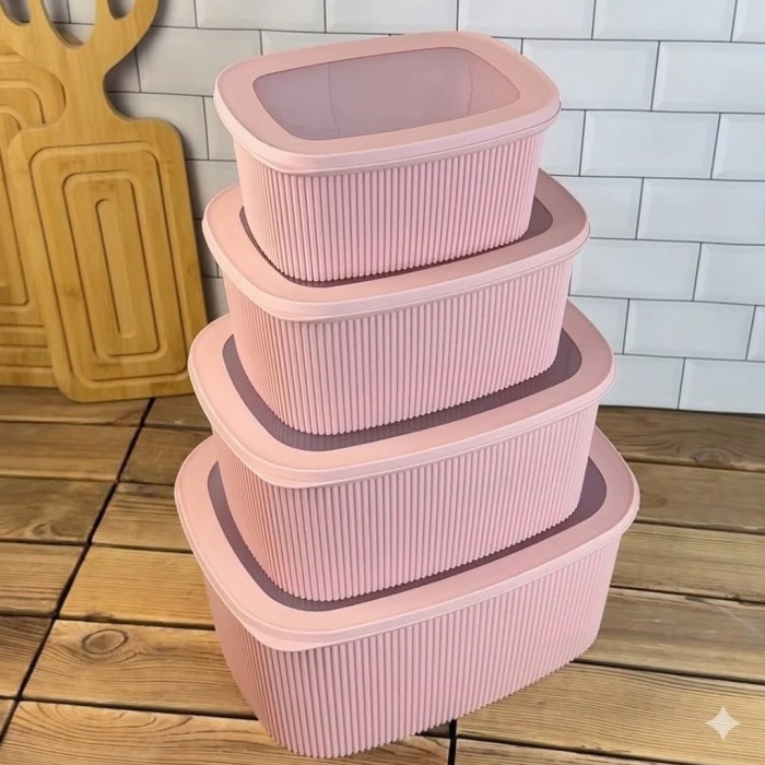 طقم تبرويلات مستطيلة مكوّن من 4 قطع بتصميم عصري مع نقشة حزوز، مثالي لتنظيم وتخزين المواد الغذائية في المطبخ مثل البقوليات، المعكرونة، المكسرات وغيرها.