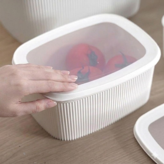 تصميمه المستطيل يساعد على توفير المساحة داخل الخزائن والثلاجة، كما أنه قابل للتكديس لسهولة التخزين والاستخدام اليومي.