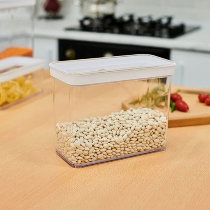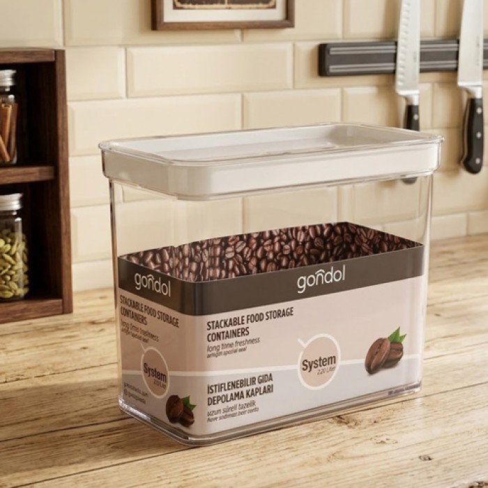 علبة حفظ بقوليات وأطعمة من الأكريليك بسعة 2.2 لتر من موديل GONDOL G694، مصممة بشكل مستطيل عملي يساعد على تنظيم المطبخ واستغلال المساحة بشكل مثالي. تتميز بغطاء محكم الإغلاق يحافظ على نضارة الطعام ويمنع دخول الهواء والرطوبة.