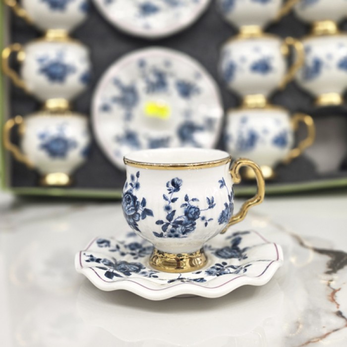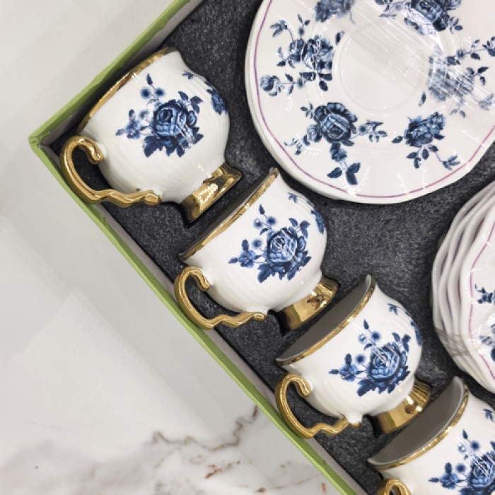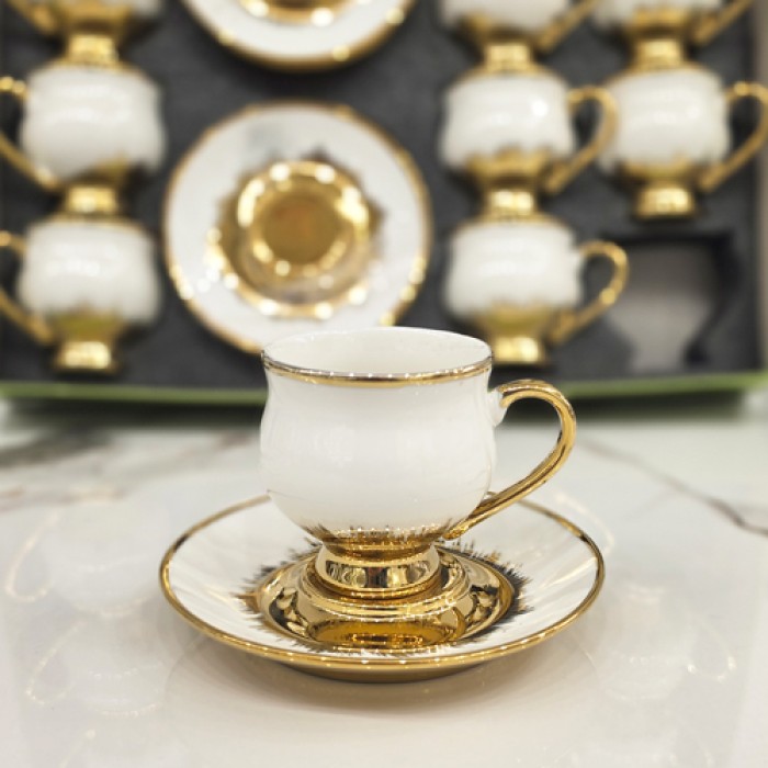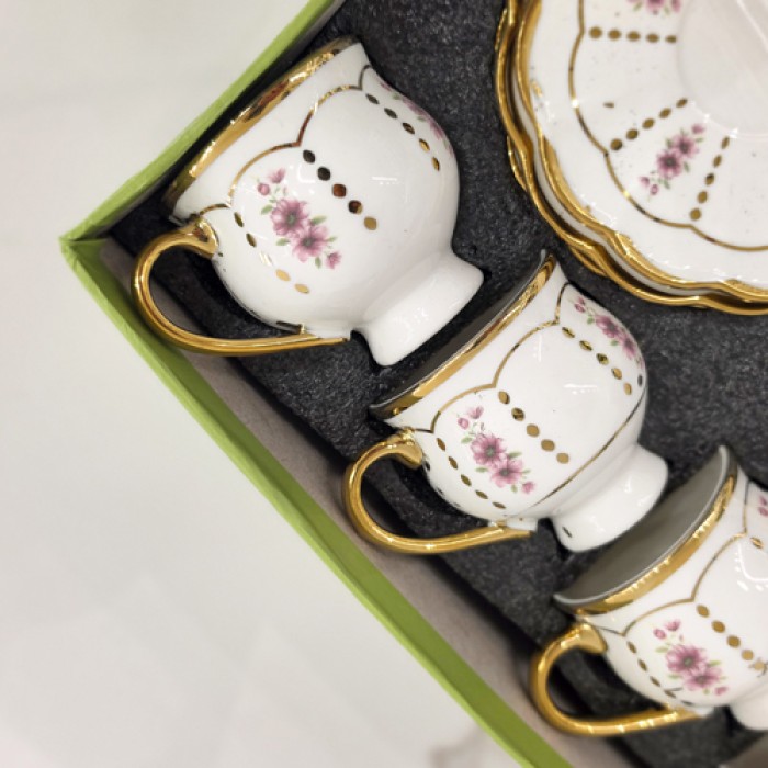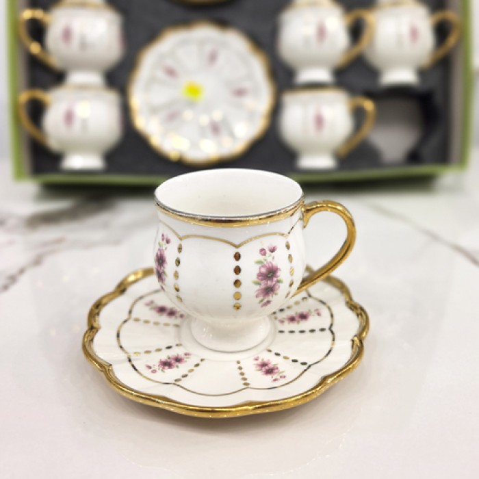 طقم 12 فنجان قهوة مورد ذهبي - خلف