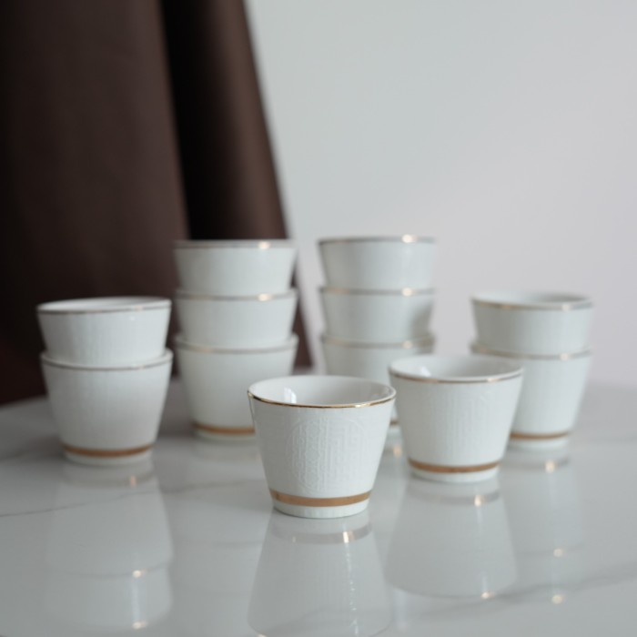طقم يحتوي على 12 فنجان شاي سادة.