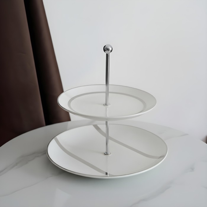 • مضيفة دائرية بطبقتين لتقديم الحلويات، الشوكولاتة، أو المكسرات.