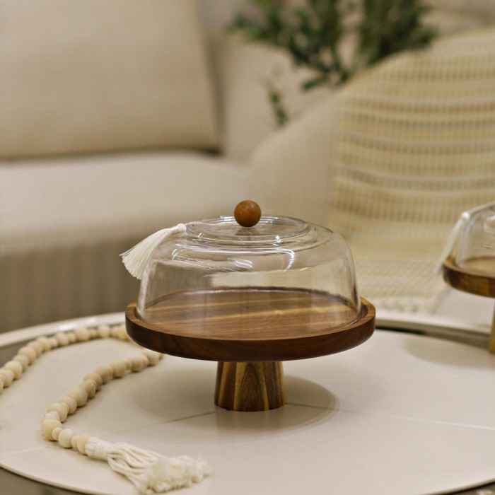 مضيفة كيك أنيقة بتصميم رمضاني مميز، مزودة بقاعدة خشبية متينة تضيف لمسة طبيعية ودافئة لسفرة رمضان. مثالية لتقديم الكيك والحلويات بطريقة راقية، وتناسب العزومات والتجمعات العائلية خلال الشهر الكريم.