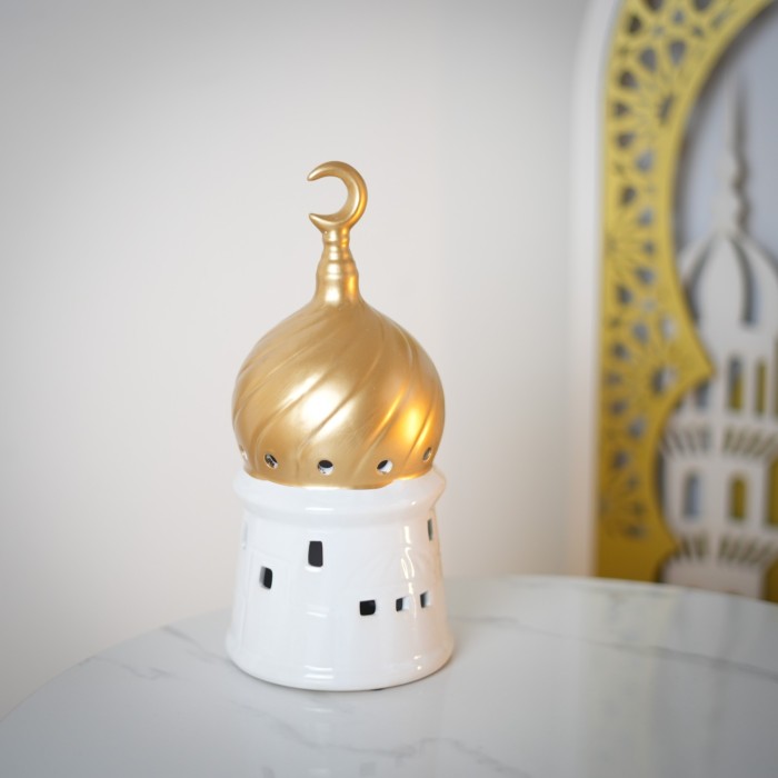 تحفة فنية رائعة من البورسلان على شكل مسجد مضيء، تضيف لمسة رمضانية مميزة للمنزل أو المكتب.