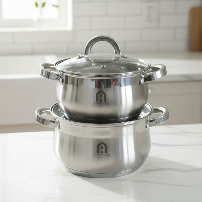 طنجرة عالية الجودة مصنوعة من ستانلس ستيل مقاوم للصدأ مع غطاء زجاج شفاف لمراقبة محتوى الطعام أثناء الطهي. مثالية للطهي اليومي والمناسبات، توفر توزيعًا متساويًا للحرارة وتتحمل الاستخدام المستمر.المميزات: