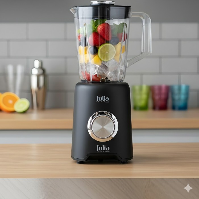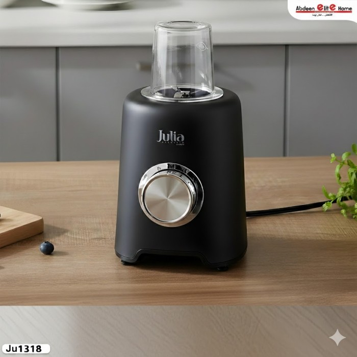 خلاط كهربائي قوي وعصري من JULIA بقدرة 450 واط لتوفير أداء ممتاز في المطبخ. يتميز بتصميم أنيق باللون الأسود يناسب جميع الديكورات المنزلية، مع شفرة فولاذية مقاومة للصدأ لخلط سريع وفعّال. مناسب لتحضير العصائر، السموثي، الصلصات والمكونات اليومية بسهولة.