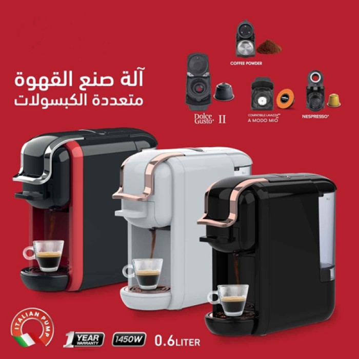 • 4 في 1 – تحضير الإسبريسو، الكابتشينو، اللاتيه، والقهوة العادية.