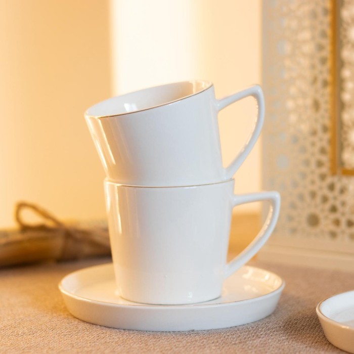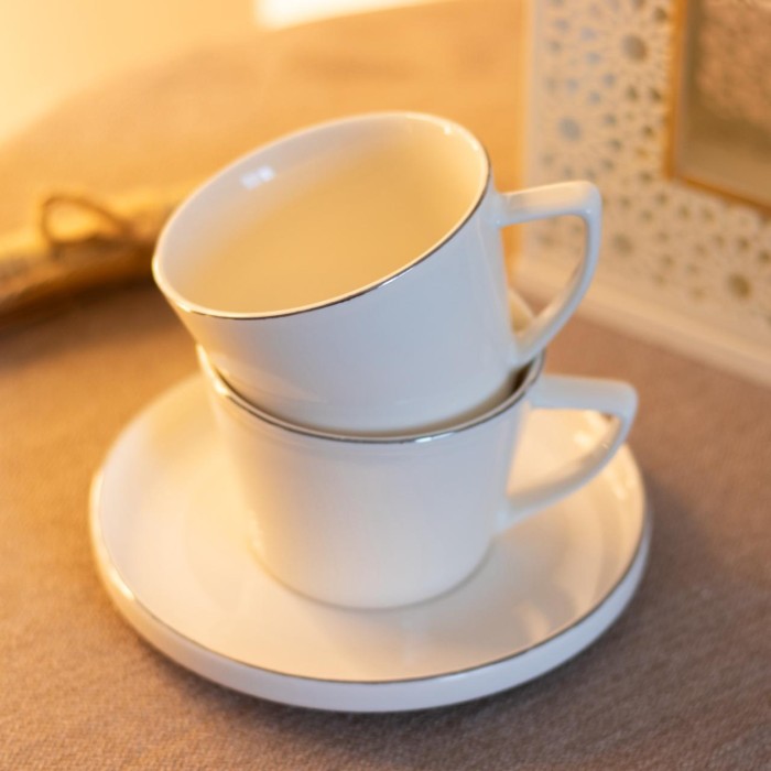 طقم أنيق ومتناغم مكوّن من 6 فناجين شاي مع 6 صحون بتشطيب فاخر يجمع بين اللون الفضي اللامع والتفاصيل الذهبية التي تضفي لمسة فخامة على كل جلسة شاي. هذا النوع من الأطقم مثالي لتقديم الشاي في المناسبات الخاصة أو الجلسات العائلية اليومية، ويضيف لمسة أنيقة لطاولة الضيافة بفضل تصميمه الراقي والمزيّن. عادةً تُصنع مثل هذه الأطقم من مواد عالية الجودة مثل البورسلان أو السيراميك الزجاجي المتين مع حواف مطلية بالذهب لتحسين الشكل العام والمتانة.