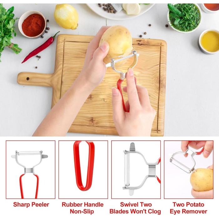 • مثالية لتقشير البطاطس، الجزر، الخيار، وغيرها من الخضار والفواكه.