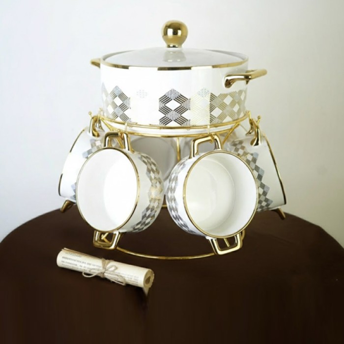 • عدد القطع: 8 قطع تشمل أطباق شوربة وملاعق تقديم.