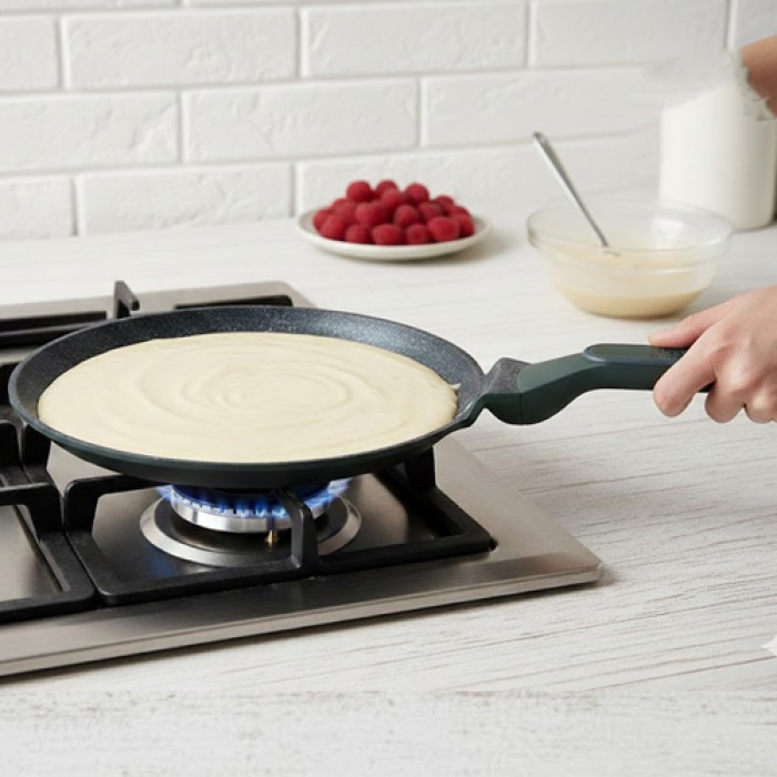 مقلى كريب 28 سم ELITE Pro GR RJ 9209104 – مقلاة مثالية لتحضير الكريب، البانكيك، التورتيلا والبيض بسهولة واحترافية. تتميز بسطح غير لاصق عالي الجودة يضمن توزيعاً متساوياً للحرارة ونتائج طهي مثالية دون التصاق. تصميم عملي مع يد مريحة وآمنة للاستخدام اليومي.