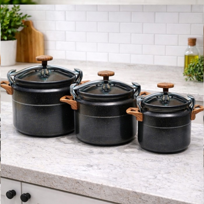 طنجرة ضغط 10 لتر أسود Tefolina – قدر ضغط واسع بسعة 10 لتر، مثالي لتحضير وجبات كبيرة بسرعة وكفاءة مع الحفاظ على نكهة الطعام وقيمته الغذائية. مصنوع من هيكل متين مع طبقة داخلية غير لاصقة، مزوّد بأنظمة أمان متعددة لضمان ضغط مستقر وطهي آمن. تصميم عصري باللون الأسود يناسب جميع المطابخ.
