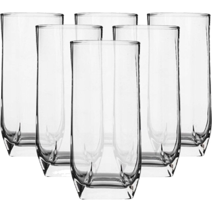 طقم كاسات شرب زجاجية عملي وأنيق مناسب لتقديم العصائر، المشروبات الغازية (الصودا)، الماء، والمشروبات الباردة في المنزل أو عند الضيوف. تصميم هذه الكاسات عادةً بسيط وشفاف ليبرز لون المشروب ويعطي طابع نظيف ومرتب على المائدة. يمكن استخدامها في المناسبات اليومية أو الاحتفالات الصغيرة.