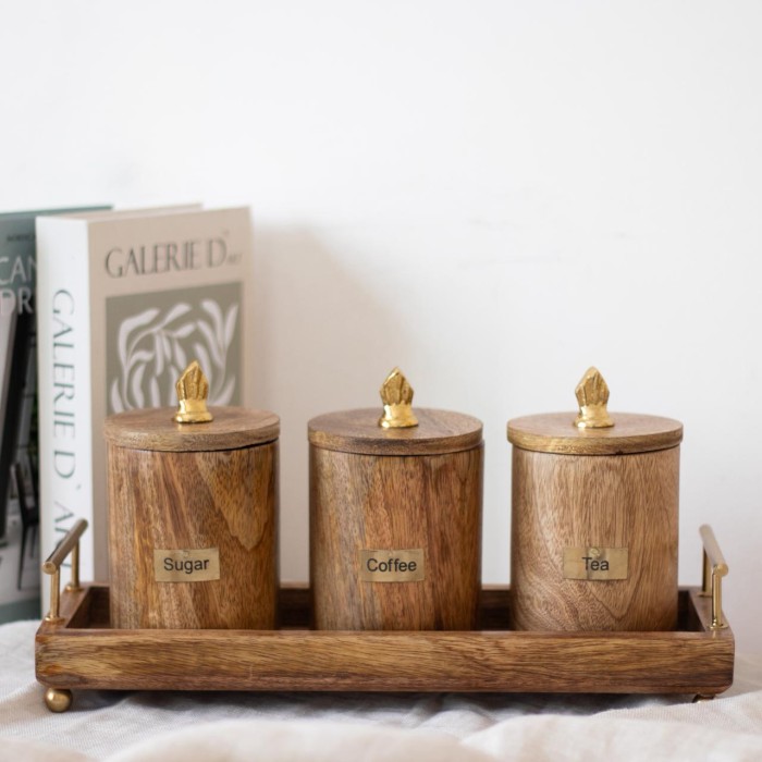 الضيافة أو المطبخ. يتميز بجودة تصنيع عالية وخشب متين مع تشطيب أنيق يبرز جمال الخشب الطبيعي. مناسب لتقديم السكر وأكياس الشاي بطريقة منظمة وأنيقة، مما يجعله خيارًا مثاليًا للاستخدام اليومي أو للضيافة.