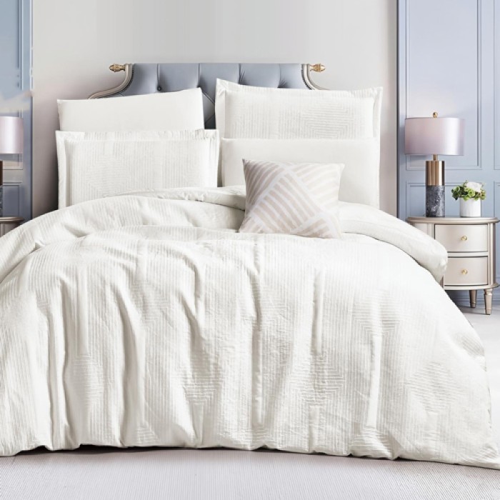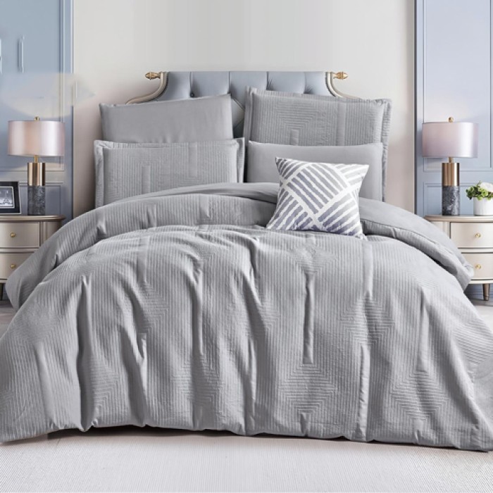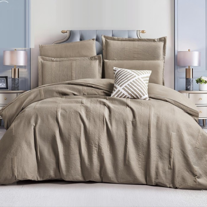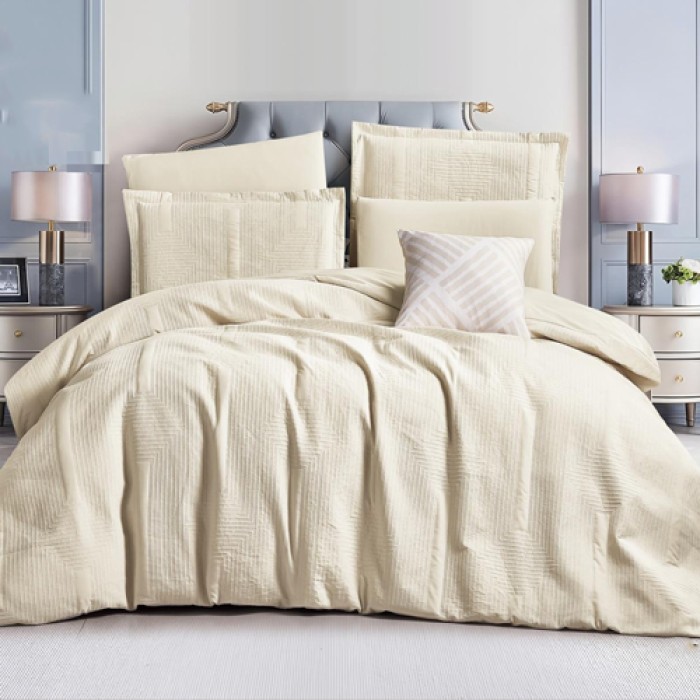 يتكون الطقم من 7 قطع متكاملة لتجهيز السرير بشكل كامل، مع تصميم عصري وألوان جذابة تضيف لمسة أناقة لغرفة النوم.