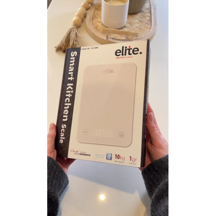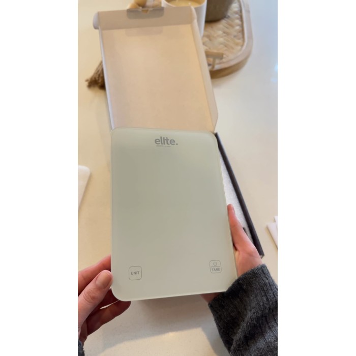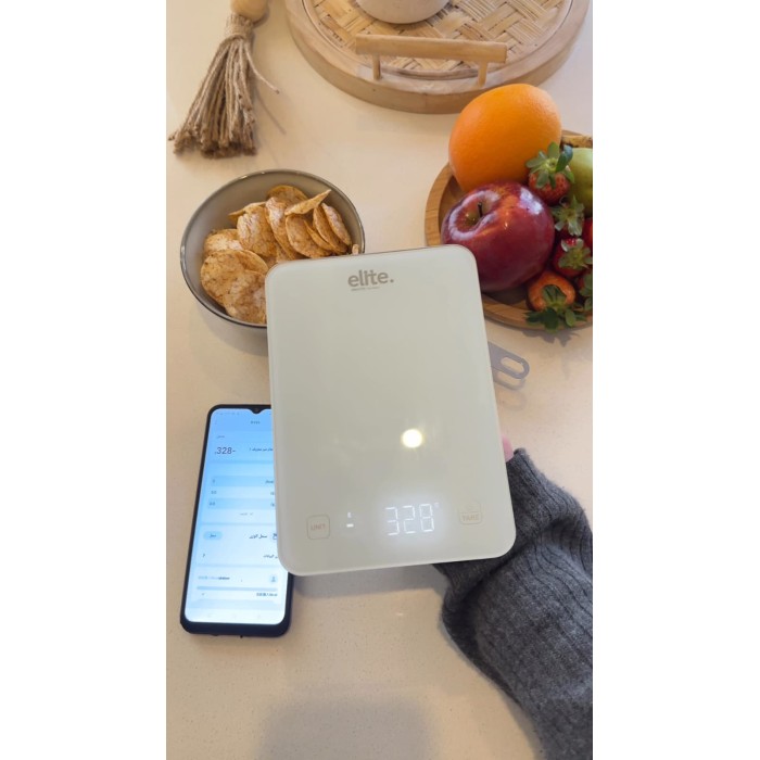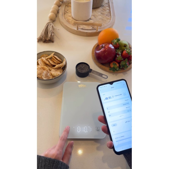 ميزان مطبخ رقمي من Elite مصمم لقياس مكونات الطعام بدقة عالية، مناسب للطبخ اليومي وصنع الحلويات والأنظمة الغذائية.