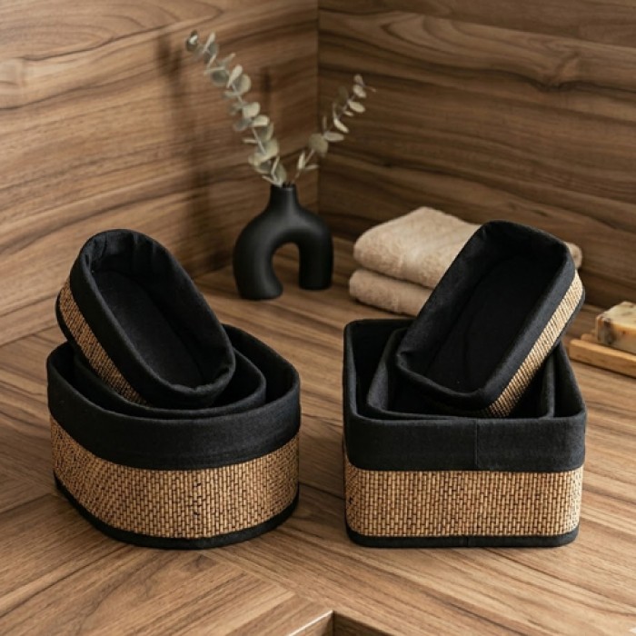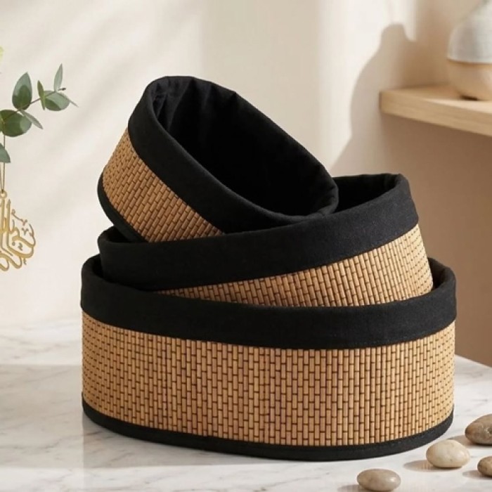 طقم 3 سلة قش بيضاوي قماش اسود 9252105