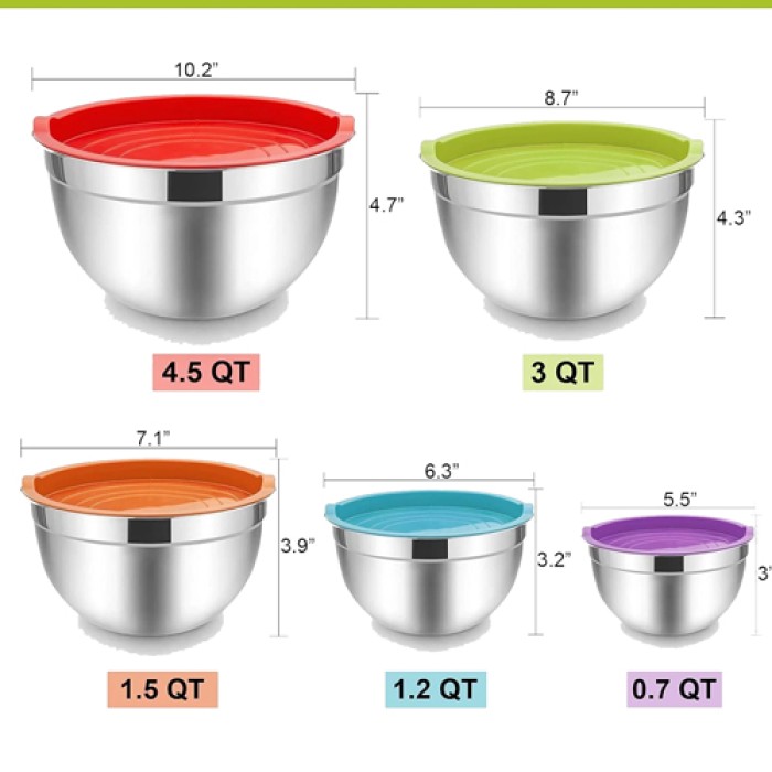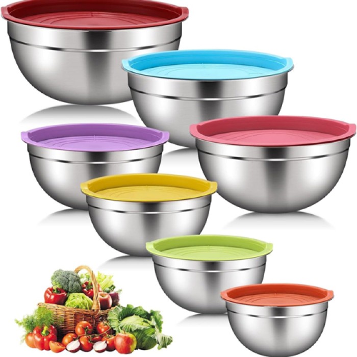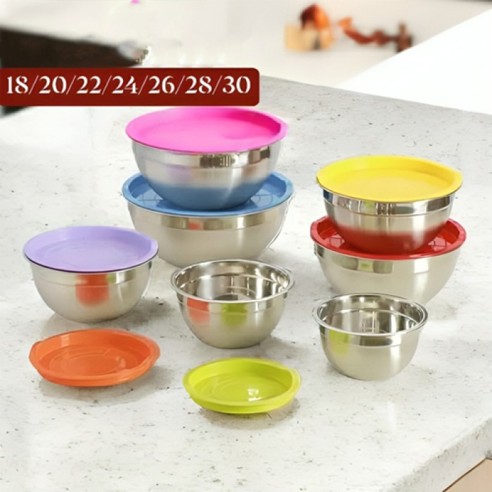 طقم مكون من 7 جاطات ستانلس ستيل عالية الجودة مع أغطية ملونة، مناسب لحفظ الطعام وتقديمه بطريقة عملية وأنيقة في المطبخ. يتميز الطقم بتصميم متين وخفيف الوزن، مع أغطية محكمة الإغلاق تساعد على حفظ الطعام طازجًا لفترة أطول.
