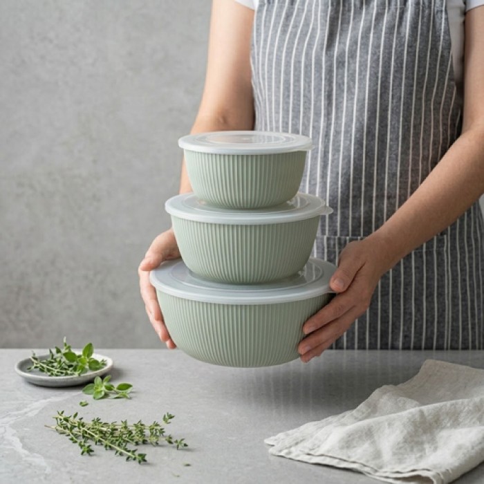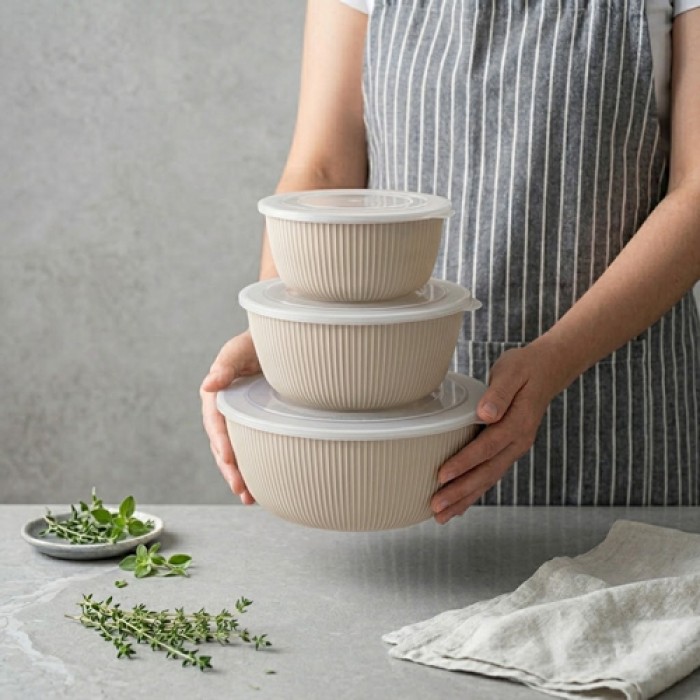 طقم تبرويل بلاستيك دائري من GONDOL موديل G809 يتكون من 3 علب بأحجام مختلفة، مثالي لحفظ وتخزين الأطعمة بطريقة عملية ومنظمة. التصميم الدائري مناسب لمختلف أنواع الأطعمة ويُسهل الاستخدام اليومي في المطبخ.