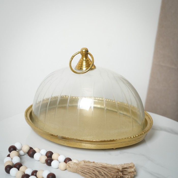 قالب كيك أنيق مكوّن من غطاء زجاجي شفاف مع قاعدة نيكل وخشب هندي، مصمم لتقديم وحفظ الكيك والحلويات بشكل فاخر. يجمع بين المتانة والتصميم الجذاب ليكون قطعة مثالية للضيافة والمناسبات.